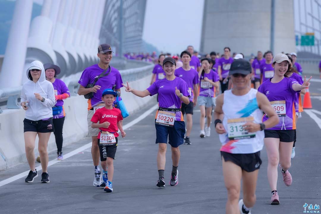 連接新北市淡水區及八里區的淡江大橋將在5月12日完工通車,4月18日7000名民眾報名參加路跑,搶先體驗在新橋跑步的快感。香港中通社圖片