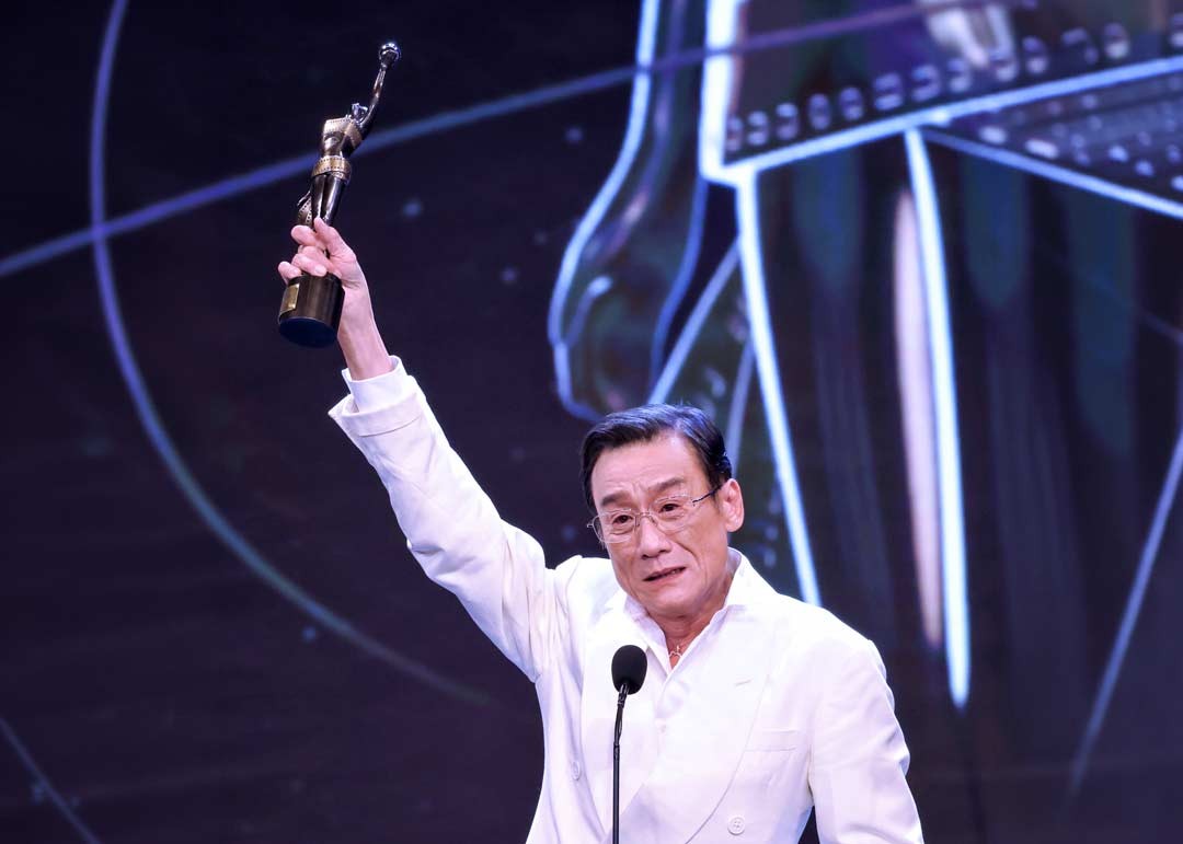 4月19日,香港影壇盛事“第44屆香港電影金像獎”頒獎禮在香港文化中心舉行。梁家輝憑《捕風追影》第五次奪得最佳男主角。(香港中通社記者 謝光磊 攝)