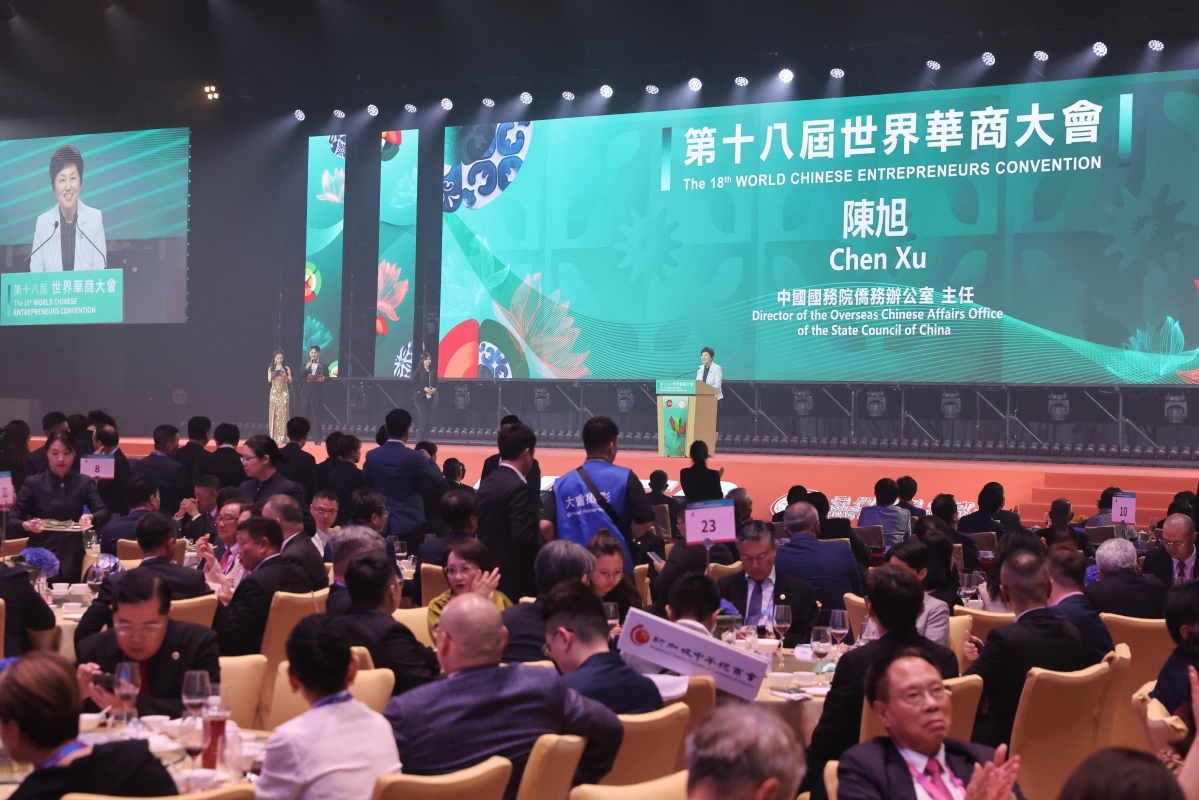 香港中通社澳門11月2日電(記者 黎金良)第十八屆世界華商大會11月2日至4日在澳門舉行。中國國務院僑務辦公室主任陳旭在2日的大會歡迎晚宴致辭指,世界華商大會自創辦以來,在各方共同努力下,已成為全球華商加強聯繫、促進合作的重要平台,在推動中外經貿往來、助力華商事業發展、提升華僑華人凝聚力和國際影響力等方面,發揮著重要作用。