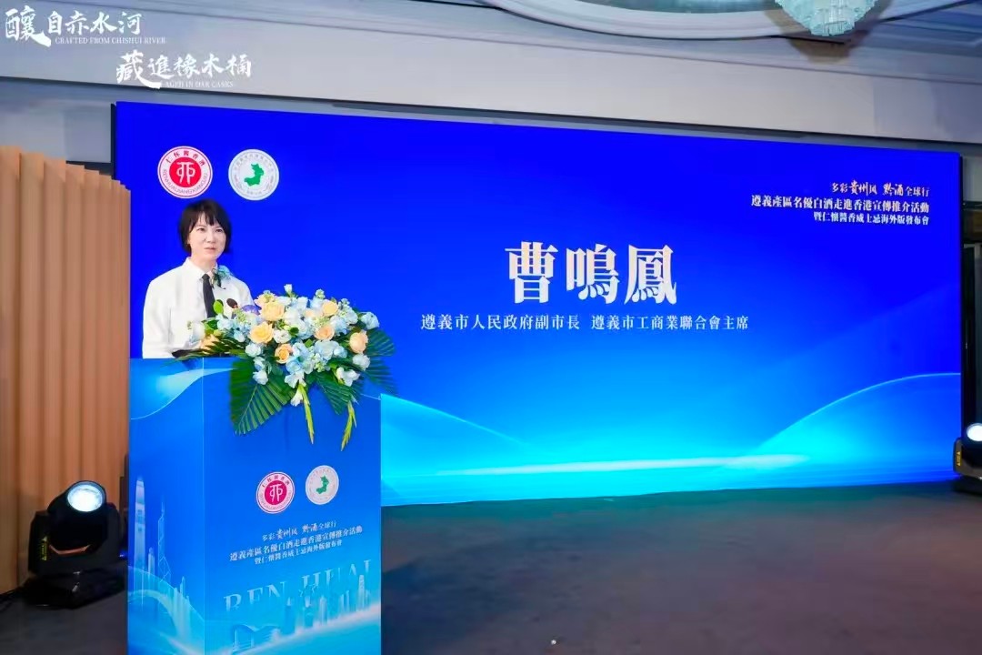 遵義地處北緯27度雲貴高原北部,赤水河蜿蜒數百里,造就了獨一無二、不可複製的釀酒生態環境。得天獨厚的自然稟賦孕育了綠色健康的遵義白酒,千百年來,當地堅守傳統工藝、追求極致品質,匠心傳承鑄就了高品質醬酒。遵義市副市長、市工商聯主席曹鳴鳳在致辭中表示,遵義白酒藉助香港平台開拓國際市場,目前產區白酒出口勢頭強勁,遠銷全球60個國家和地區。此次走進香港,不僅帶來了醇厚的名優白酒,更秉持共贏的開放姿態,並提出三點倡議:一是共建“全球出海樞紐”,讓更多遵義白酒通過香港走向全球,共享出海紅利;二是共促“產業能級躍升”,推動白酒產業數字化轉型、品牌國際化升級,實現從“產品出口”到“品牌輸出”的跨越;三是共築“文化交流橋樑”,聯合舉辦醬酒品鑑會、文化交流等活動,增進世界酒文化交融互鑑。