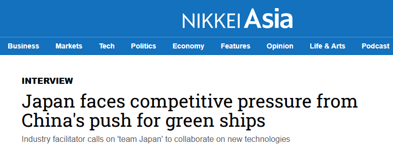 《日經亞洲》報道截圖 日本《日經亞洲》網站11月24日報道指出,日本多家主要造船和海運公司已加入“日本綠色船舶規劃設計中心”(GSC),攜手開展以氫、氨等下一代燃料為動力的船舶研發工作。 “當前正掀起一股脫碳浪潮,”GSC代表董事、日本第二大造船企業日本海洋聯合株式會社(JMU)前總裁三島慎次郎表示,“中國在下一代燃料船舶的研發方向上已作出重要調整。” 三島指出,中國正大力推進綠色船舶的研發,以達成國際海事組織(IMO)設定的2050年國際航運溫室氣體淨零排放目標,而日本在這一領域已顯落後。他強調,日本必須加快下一代燃料船舶的研發步伐。 三島分析認為,在與中韓兩國的競爭中,日本船企因成本競爭力不足,導致部分大型企業陸續退出市場,造船業整體呈現萎縮態勢。他特別指出,行業競爭力高度依賴造船流程的上游研發環節,加強技術攻關是提升日本造船能力的關鍵。 日本業界的擔憂不無根據。《日經亞洲》早前報道顯示,儘管日本仍位列全球第三大造船國,但其全球市場份額已從2004年的36%大幅下滑至2024年的13%。據日本交通運輸省估算,在質量相當的情況下,中國船舶的價格比日本同類產品低約20%。 為振興本國造船業,日本政府與企業已採取多項舉措:今年10月,日美簽署諒解備忘錄,同意在造船領域開展合作;同期,多家日本船企承諾投資約23億美元用於升級設備、提升產能;此外,日本還考慮設立國營造船廠,并積極布局下一代船舶的研發。 然而,中國造船業的前進步伐并未停歇。在全球能源轉型浪潮中,中國走在前列,船舶製造業的綠色轉型也已提前部署。2023年底,中國發佈了《船舶製造業綠色發展行動綱要(2024—2030)》,明確提出船舶製造業綠色發展方向是“全球海事工業新一輪科技革命和產業變革的重要方向”,也是“中國船舶工業實現高質量發展的必然途徑”。