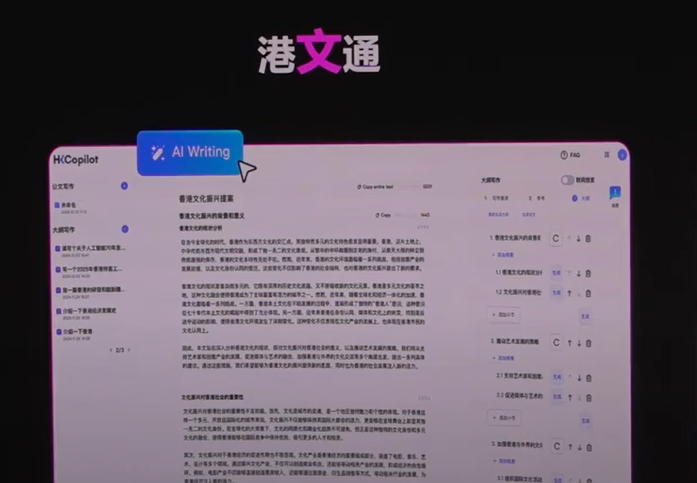 圖為“港文通”平台畫面(香港中通社視頻截圖) 在新一份《財政預算案》中,特區政府將在本屆任期內削減約10000個職位。較早前,香港社會對公務員編制仍然保留打字員崗位傳出一定意見,“港文通”有助精簡相關崗位的職系,在確保特區政府相關招標書等文書能有效落實下,同時能維持甚至減少相關崗位的設置,從而增加每工時(Man-hour)的利用效率。此前,前代的“港文通”已經在香港特區政府全部70多個部門中試用,並參與調整,協助後續模型的迭代更新。 陳茂波在公佈《財政預算案》時指出,人工智能是加速培育新質生產力的核心,將通過前沿研究和落地應用,全力發展人工智能為關鍵產業,並賦能傳統產業升級轉型。以DeepSeek為基礎的V1模型或可成為香港的“基建級”人工智能平台,賦能香港,發展各個產業,尤其新質生產力賦能的新興產業。 該模型將陸續在讓公務員試用,並將在一系列測試及評估後,發佈對面市民大眾的產品。 (完) 【編輯:梁嘉軒】