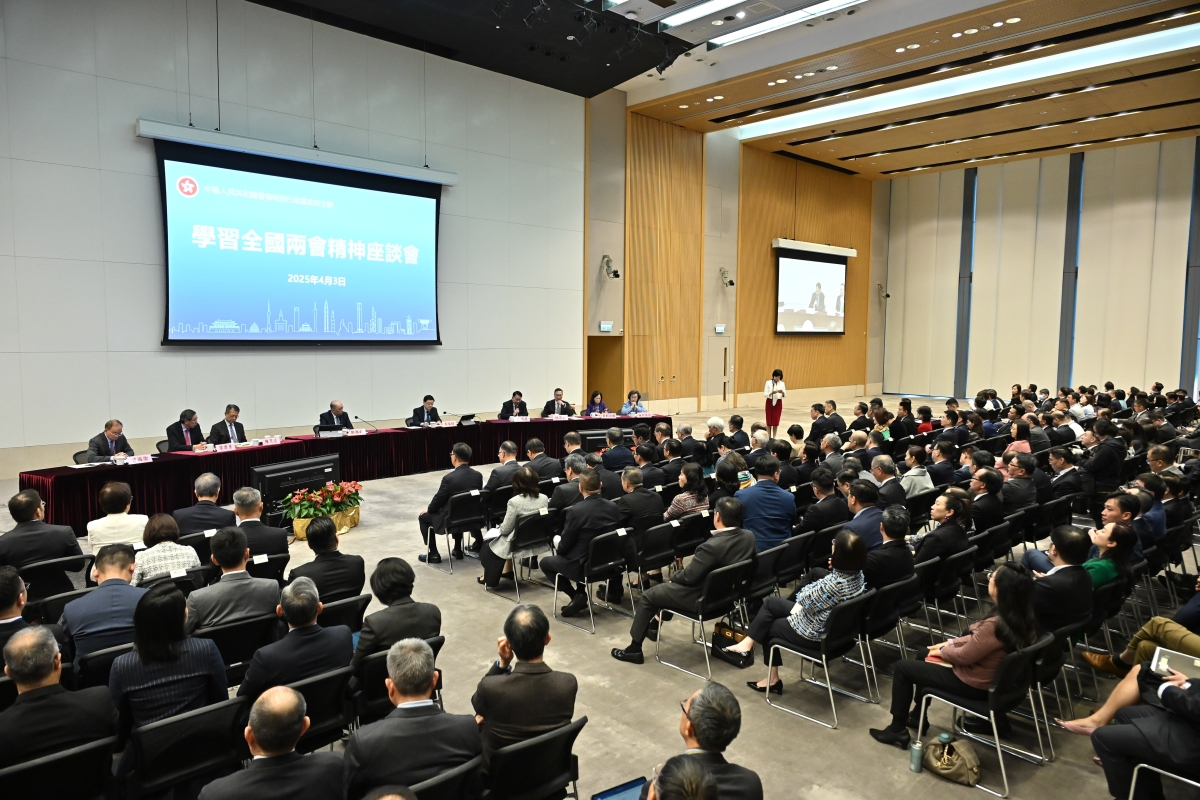 香港新聞網4月3日電 第十四屆全國人民代表大會第三次會議和中國人民政治協商會議第十四屆全國委員會第三次會議在今年3月圓滿閉幕。香港特別行政區政府3日在特區政府總部舉辦學習全國兩會精神座談會,讓與會者更深入了解全國兩會的重要內容,以及其對香港特區的重要意義。