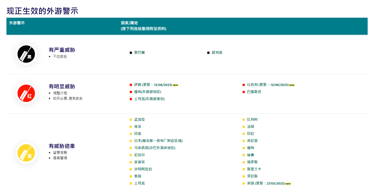 香港中通社6月13日電  鑑於伊朗最新局勢,香港特區政府保安局13日更新外遊警示,目前伊朗旅遊警示為紅色,即有明顯威脅,保安局呼籲市民如非必要避免前往。