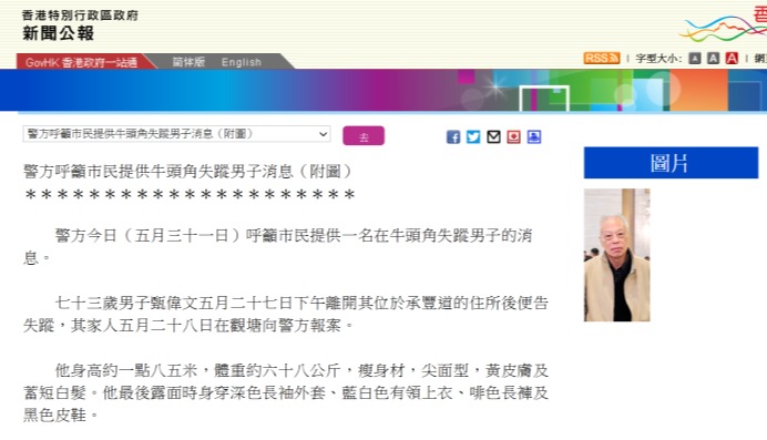 香港新聞網8月21日電 香港警方21日呼籲市民提供一名在紅磡失蹤的男子及其兒子的消息。
