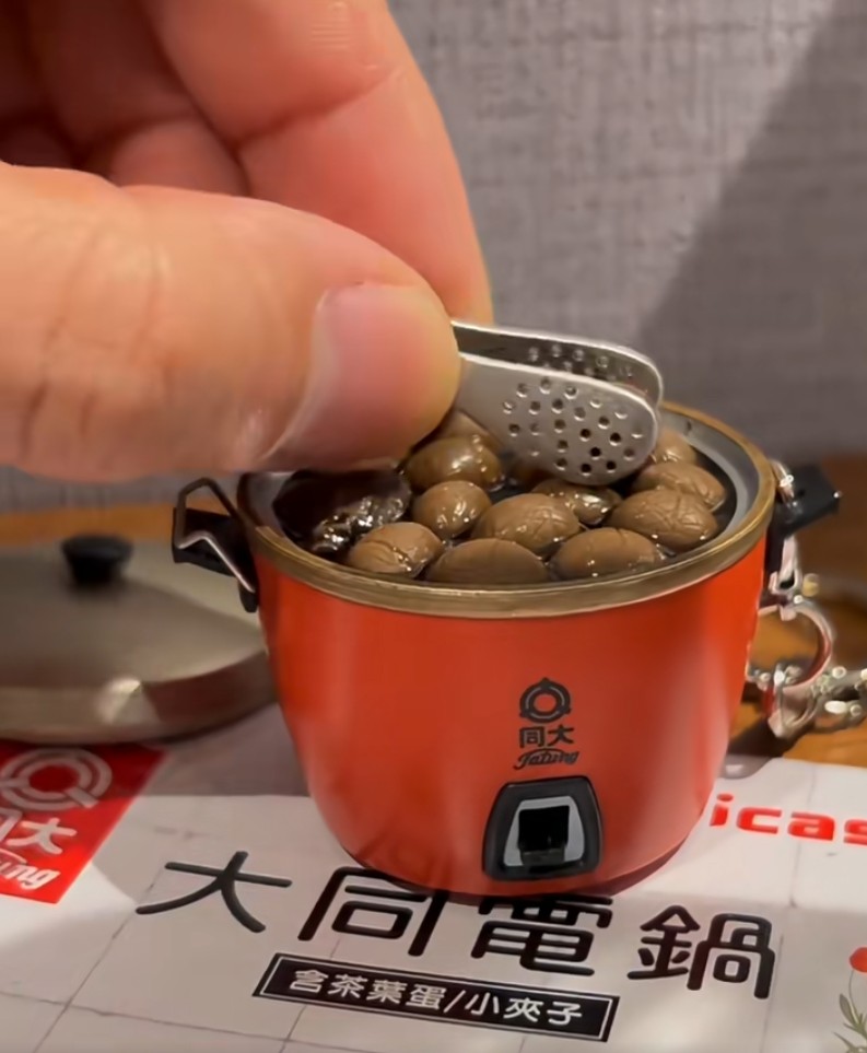 大同電鍋造型悠遊卡,打開電鍋還有擬真茶葉蛋與滷包。(小紅書視頻截圖)