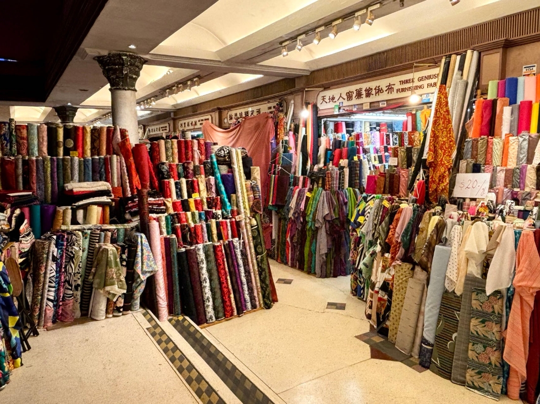 一樓“花布街”則瀰漫著更深的不安。15戶布商中已有3家結業,其餘面臨10月底前撤離的最後通牒。他們原是1991年因永安街重建而遷入的布商,如今恐成香港布藝產業的絕響。展櫃內陳列著香雲紗、廣彩等織品,牆角“全場五折”標語格外顯眼。經營窗簾布藝的店主坦言,暫時未有下一步打算,“外面租金太高,很難找到合適店舖經營,走一步算一步,可能清貨後就結業。”有市民特地到場打卡,街坊梁先生撫摸著英式電話亭感慨:“擔心裝修完變了樣,這些電話亭外面已經找不到。”