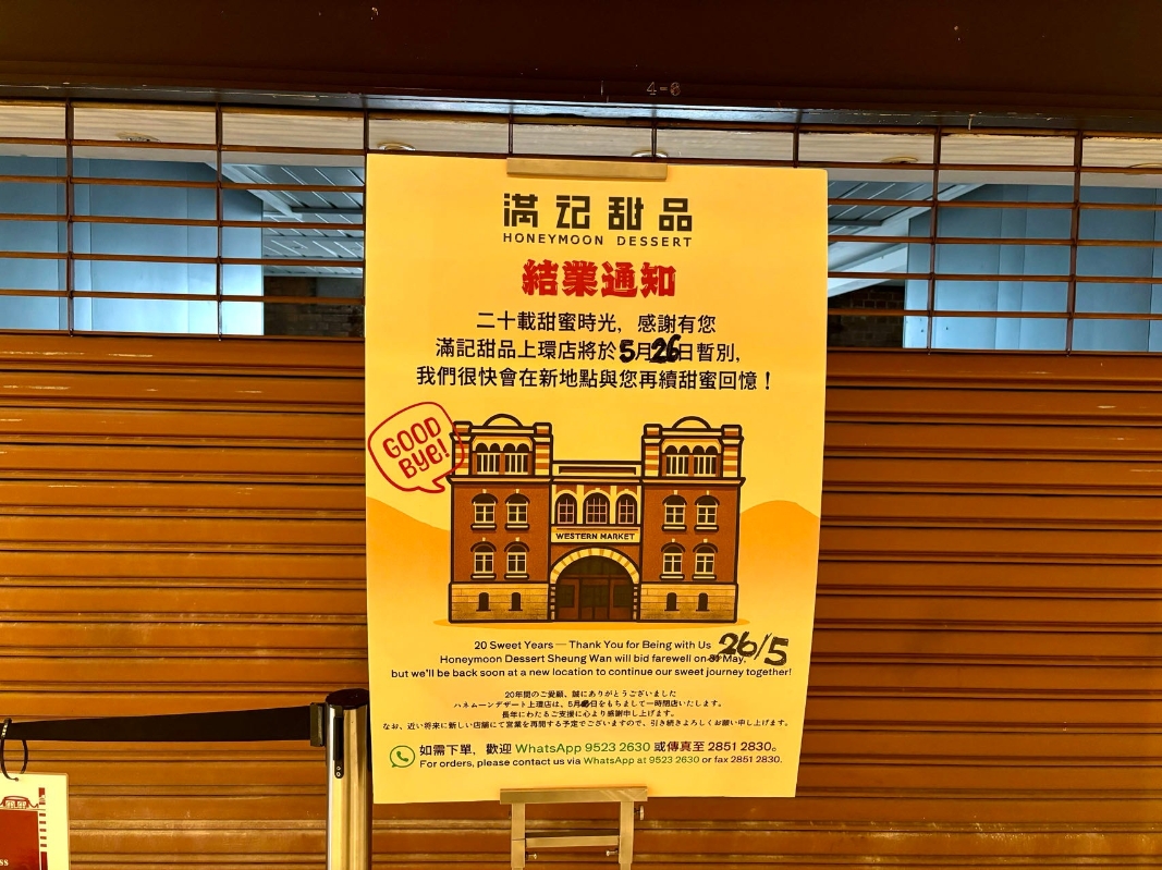 在西港城營業20年的滿記甜品於5月26日結業,表示“很快會在新地點與您再續甜蜜回憶!”(香港中通社記者 黃璇攝)