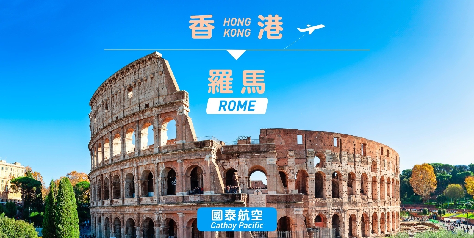 國泰航空開通每周三班香港往來羅馬航班分享到: