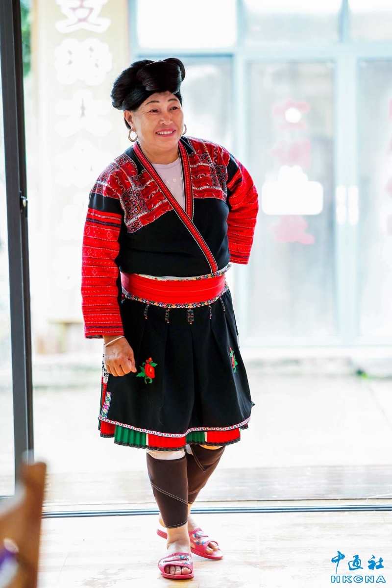 紅瑤族婦女將長髮盤成獨特的髮髻