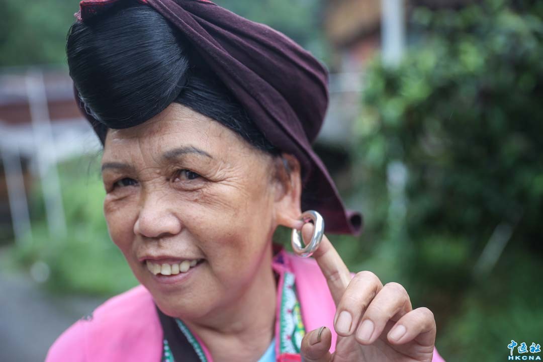 紅瑤族婦女展示巨型耳環,表示是嫁妝,結婚當天已戴上