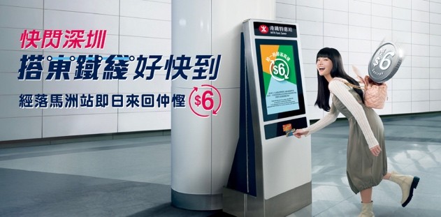 成人及指定樂悠咭乘客經落馬洲站即日來回深圳輕鬆慳$6 由即日起至9月30日,使用成人八達通及樂悠咭(60-64歲)的乘客,只要經港鐵“落馬洲站”前往深圳,並於同日回程時乘搭深圳地鐵4號綫至“福田口岸站”,出閘前以同一張八達通拍“港鐵特惠站”,再經港鐵“落馬洲站”回港,即可享有$6車費優惠。