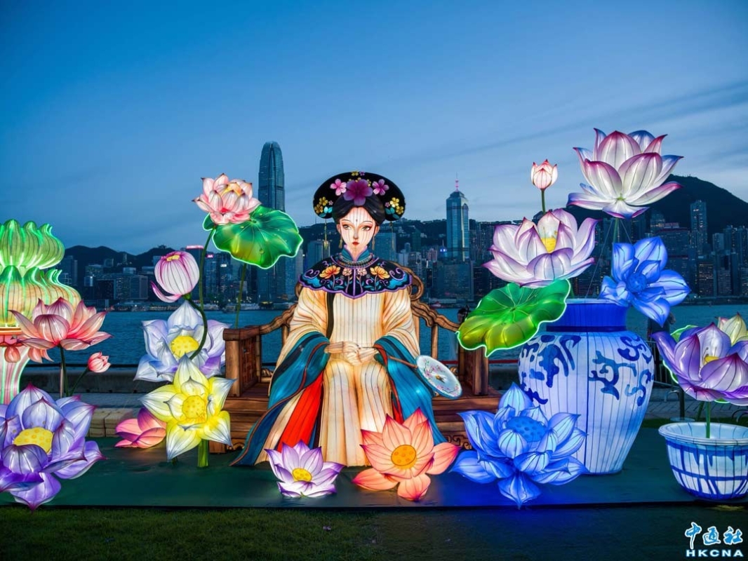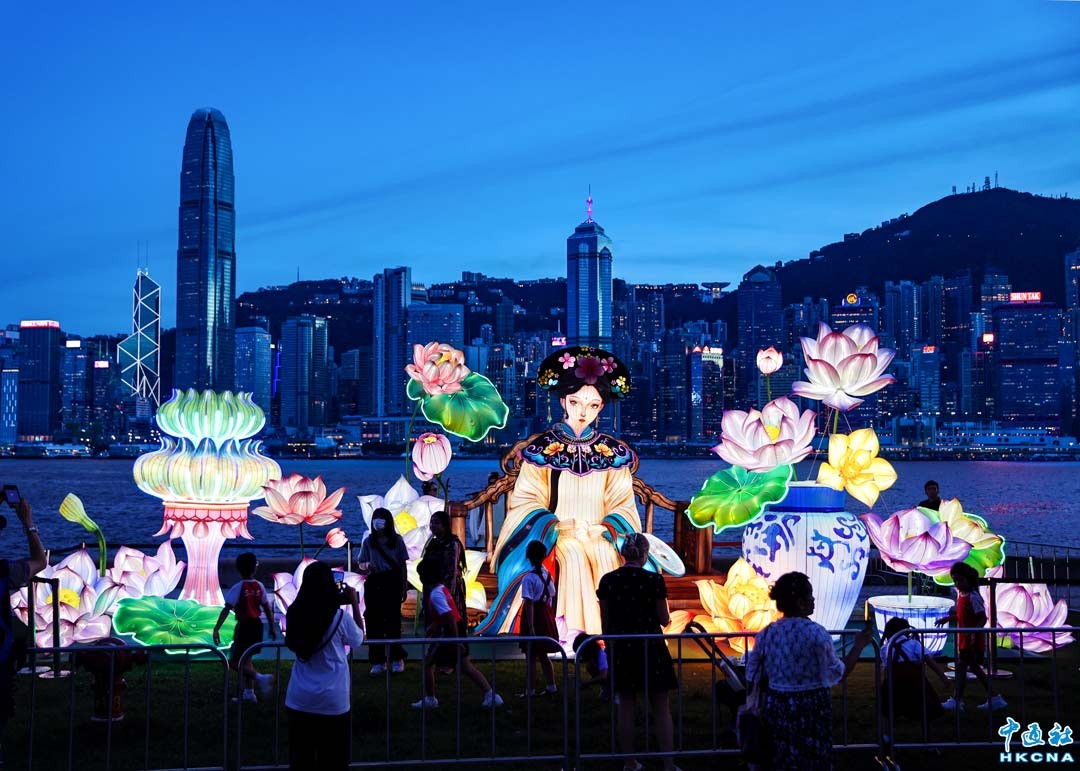 花燈與維港景色組成一道亮麗的風景綫 (徐文峰 攝)