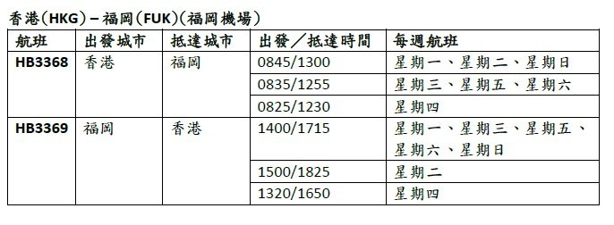 大灣區航空聖誕新年增開香港至福岡航班 每日1班