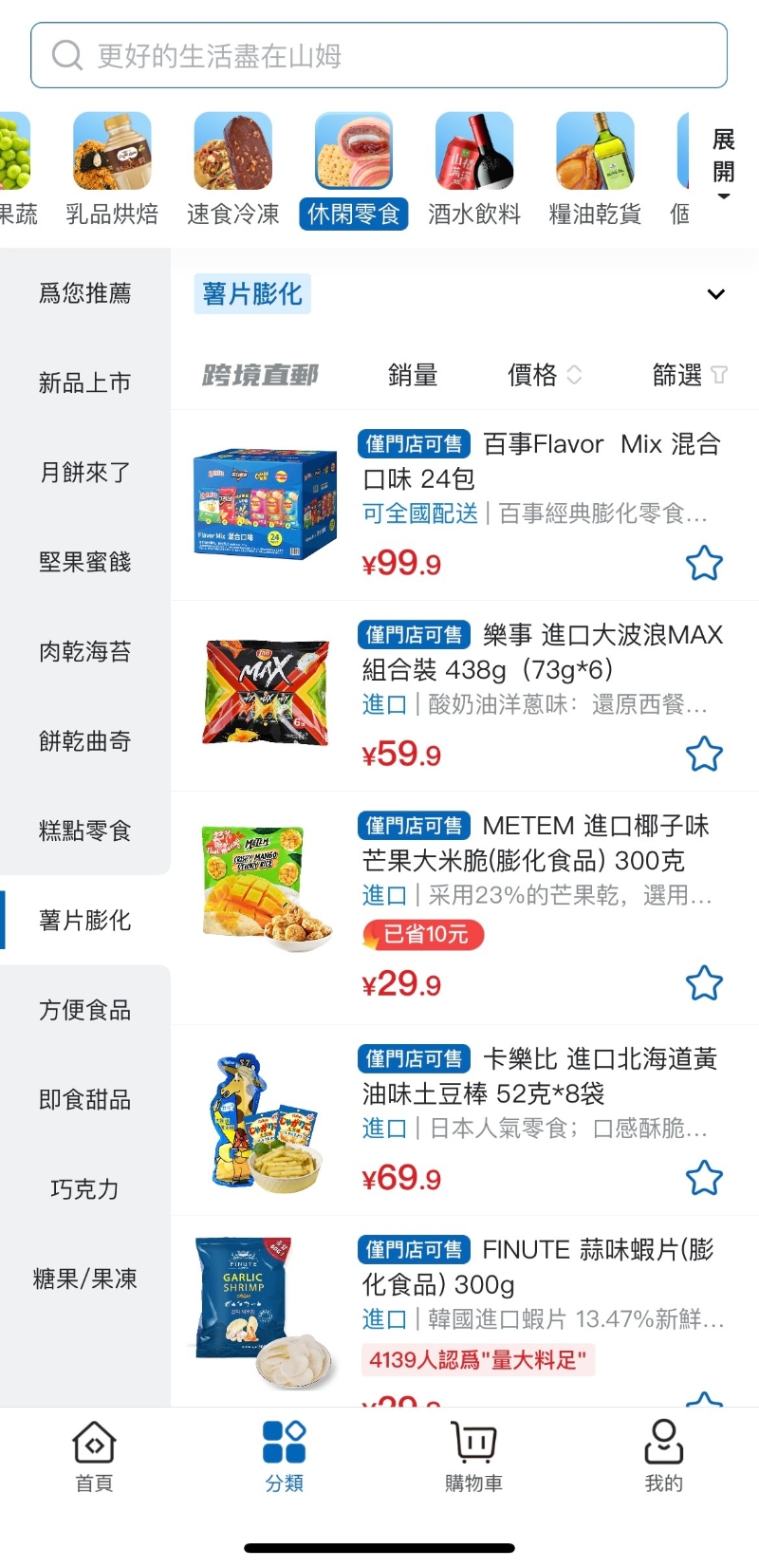 山姆香港跨境直郵服務受限制,不少商品在App裡註明“儘門店可售”。