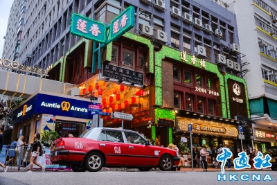 香港中通社6月5日電  (記者 徐嘉儀)從香港尖沙咀加拿分道往上望,就能見到紅字綠框、寫著“蓮香”二字的霓虹燈牌。走近一看,是一間港式茶樓,設上下兩層,深木色花窗、翡翠色裝飾,進入茶樓要穿過掛滿橙黃燈籠的小巷,仿佛帶人回到百年前的老香港。
