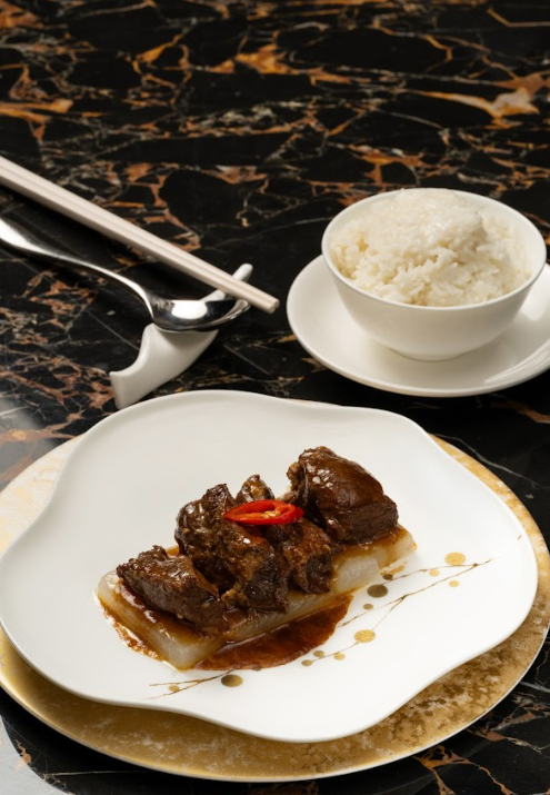 蜂蜜蘿蔔炆牛肋條配白米飯。 十一月續章,風味愈發濃厚豐盈 港式蒜香炒蝦乾韭菜花,蟲草花竹笙燴西蘭花配蛋炒飯:蝦乾的鹹香搭配時令韭菜花相得益彰,佐以滋補的蟲草花竹笙,為旅程增添健康元氣。 蠔皇花菇炆花膠配白米飯:精心處理的花膠與厚實飽滿的花菇以蠔皇汁炆煮入味,盡顯粵菜的精髓。 十二月壓軸,暖意洋溢