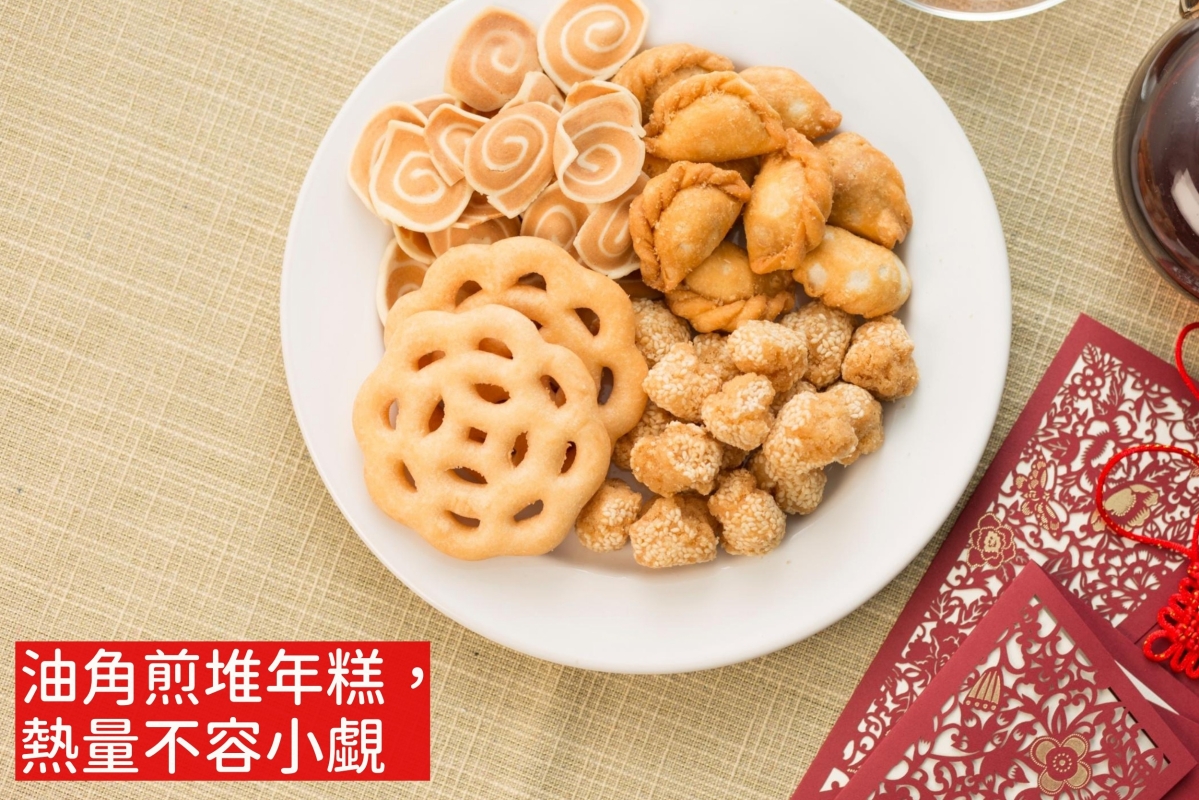 金幣朱古力多含高飽和脂肪和添加糖。 不少家庭會在全盒或新春糕點盤裡放上金幣朱古力,象徵財富圓滿。事實上,這類加工巧克力多含高飽和脂肪和添加糖,攝取過量容易對心臟血管造成負擔。營養師建議,不妨以柑橘、蘋果、士多啤梨(草莓)等新鮮水果替代,寓意同樣吉祥,更可補充膳食纖維和維他命C,提升免疫力。 此外,新春期間熱門的糕點如油角、煎堆、年糕、蘿蔔糕等,熱量亦不容小覷。例如100克油角約含590千卡的熱量,2至3件等同一頓正餐的能量;而煎堆每件約有390千卡,與一碗飯相當。湯圓4至5顆、年糕2片、蘿蔔糕4片,也都接近一頓飯的熱量。Lisa稱,這類高熱量糕點應淺嚐即止,最好與親友分食,並減少餐主食的攝入量,搭配大量高纖蔬菜,以平衡熱量。