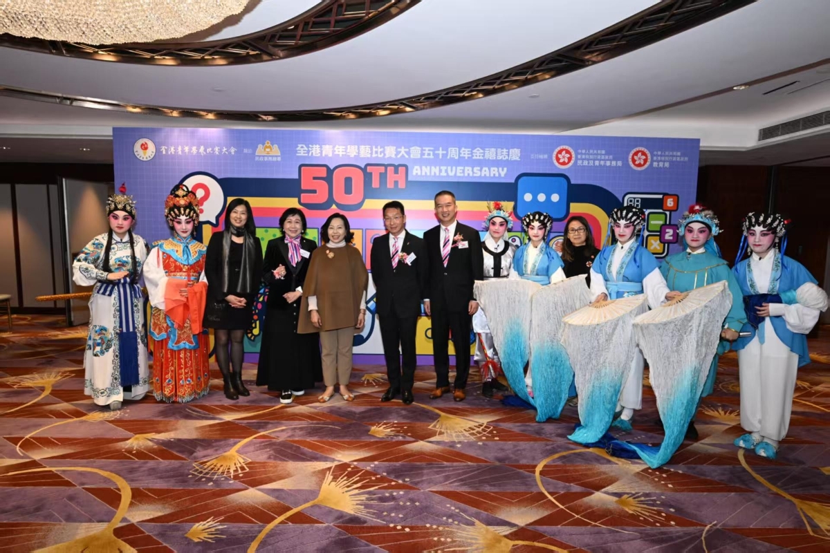 香港新聞網2月17日電 全港青年學藝比賽大會日前假灣仔君悅酒店舉行五十週年金禧晚宴,超過400位嘉賓包括大會贊助人,評判,合作夥伴,“學藝大使”(曾經參與學藝比賽而獲獎的青年)及其家人出席。大會邀請民政及青年事務局局長麥美娟及民政事務總署署長杜潔麗擔任主禮嘉賓。晚宴氣氛熱鬧又溫馨,在儀式開始時,一眾曾經參與學藝比賽的“學藝大使 ”,手持心燈與主禮嘉賓們在台上,展現“薪火相傳五十載,弘揚學藝育英才”文化傳承的承諾。晚宴中更有得獎者的精彩醒獅及粵劇表演。 大會主席陳毅生致歡迎辭提到,大會初創時比賽只有五項,至今比賽項目已增加至十九項,由傳統文化以至社區保育多個範疇,展現了大會與時並進的精神。五十年來大會本著推廣中國文化與傳統藝術的初心,累積的參賽人次超過59萬。除了感謝所有參加者,比賽評判,贊助人及合作夥伴,最要衷心感謝民政事務總署由本會創辦至今一直的無間支持。感恩個往,展望未來,讓大家攜手共創下一個五十年的輝煌篇章! 麥美娟致辭時讚揚學藝大會一直致力弘揚中華文化,透過舉辦比賽,加強青年對中國文化藝術嘅興趣同認識,鼓勵他們持續學藝,陶情養志。 今年適逢金禧誌慶,學藝大會特別舉辦“學藝節”,邀請各區民政事務處合辦不同活動。先後在中西區舉辦演講技巧工作坊,及在九龍城舉辦“學藝節啟動禮 ”,由學藝大使帶領75位小學生即席揮毫,書寫“學藝 ”“中國心”等主題詞,在各社區進一步推廣中華文化藝術,培養年輕人嘅愛國情懷。