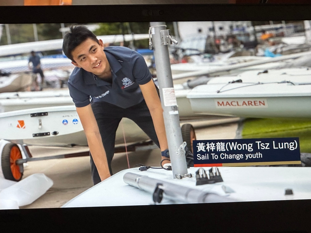 香港遊艇會會長彭孝書 隨後,香港遊艇會社區項目“伴我啟航計劃”的四位畢業生羅俊軒、黃梓龍、蘇天賜、張智皓,分享自己與帆船運動結緣的經歷,及透過“伴我啟航計劃”成功找尋的人生目標。 羅俊軒、黃梓龍二人均為17歲,2021年通過選拔成為香港遊艇會“伴我啟航計劃”的第一屆學員。兩人表示,他們參與計劃之時正值新冠疫情,因此只要限聚措施稍為鬆綁便立即抓緊時間訓練,即使要戴著口罩出海亦在所不辭。
