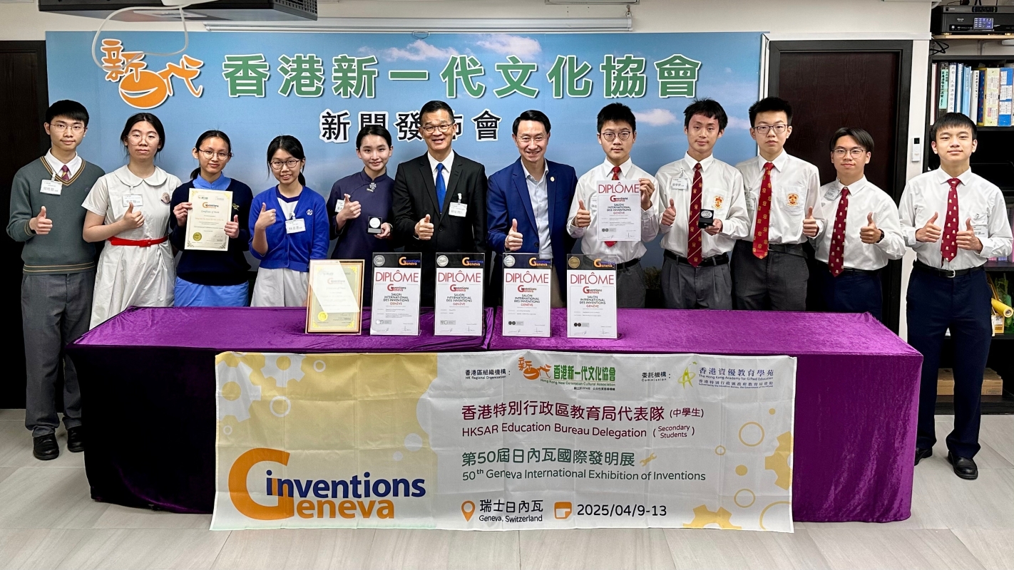今年,由特區政府教育局資助機構香港資優教育學苑委托香港新一代文化協會,負責組織香港特區政府教育局代表隊(中學生)參加“第50屆日內瓦國際發明展”。為做好是次參賽籌備工作,香港新一代文化協會於去年12月24日舉行了“國際科學比賽2025香港賽區選拔賽”,邀請了9位專家/學者組成評審委員會。先從報名的80個項目(來自34間本地學校和8間國際學校)中,選出17個項目進入決賽。再經過嚴謹的程序,甄選出5個項目(11位學生)參加“第50屆日內瓦國際發明展”(另選出5個項目(10位學生)將於5月中旬赴美國 俄亥俄州 哥倫布市參加“第76屆再生元國際科學與工程大獎賽(ISEF)”。