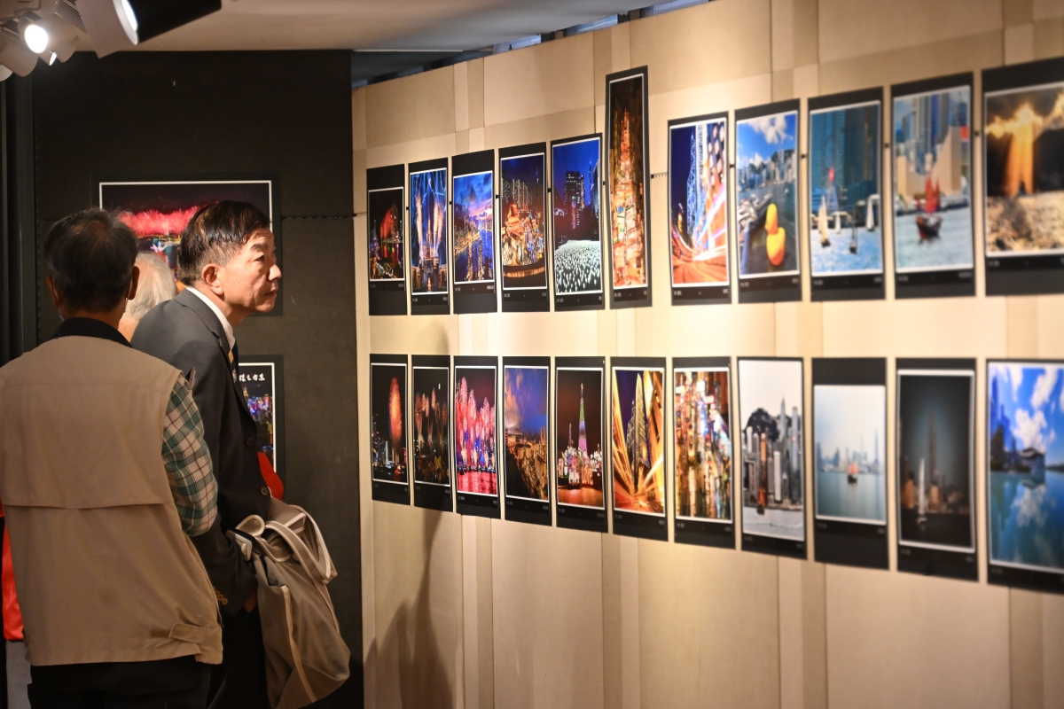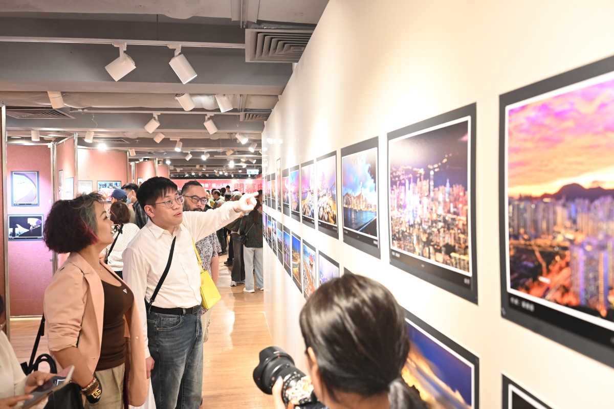 嘉賓在欣賞《拍出香港“攝”人魅力~香港風光攝影展》作品