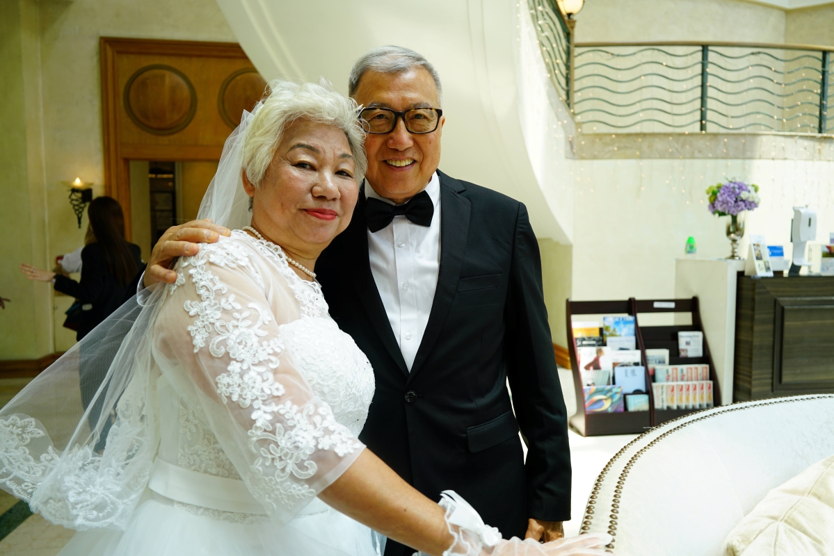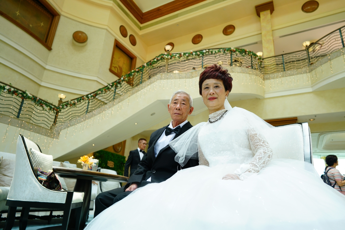 香港中通社圖片 大會主席、獅子會家庭成員及女性會員發展委員會主席吳珊珊接受訪問時表示,去年舉辦首屆30對長者拍攝婚紗照,受到長者極熱烈的歡迎,因此今年的活動加碼到50對新人參與拍攝,免費化妝、免費造型、免費拍攝,主辦方還會送一套西裝婚紗給來拍攝的長者。更值得一提的是,去年拍攝婚紗照的夫妻,今年成為現場的義工,意義巨大。據了解,婚紗照會在商場播放,讓更多人了解這個服務,吸引更多市民參與。
