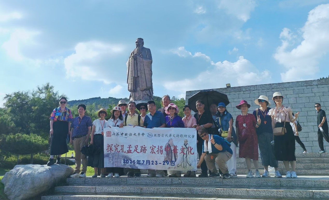 香港文旅考察團走訪齊魯共鑒儒家文化魅力香港新聞網8月1日電 2025年7月23日至29日,香港中國語文學會和國際當代華文詩歌研究會“探究孔孟足跡,宏揚中華文化”文旅考察團一行走訪齊魯,拜訪了山東省文聯和孔子研究院,并對世界文化遺產 “三孔”(孔廟、孔府、孔林)、孔子博物館、孟府、孟廟和尼山聖境展開深入參觀考察,沉浸式感受儒家文化的深厚底蘊與獨特魅力。 考察團首先拜訪了山東省文學藝術界聯合會。山東省文聯副主席何思清先生、姜慧女士會見文旅考察團團長沙浪先生和杜若鴻博士一行。何思清介紹了山東省文學藝術事業發展和山東省文聯的基本情況。沙浪介紹了詩歌研究會在藝術上海納百川,在政治上支持“一國兩制”,近年舉辦了兩屆“國際漢詩杯”詩歌比賽。杜若鴻介紹了語文學會出版的期刊《語文建設(香港)》和《文學論衡》,在學術層面上推廣中華文化。山東省文聯辦公室主任馬宗前、組織聯絡部主任喬新江、山東省曲藝家協會主席慈建國、山東省文藝評論家協會副主席兼秘書長王之明、山東省文藝創作研究院院長王宇鵬參加會見。