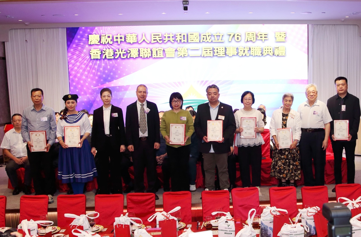 香港光澤聯誼會舉行“慶國慶暨第二屆理事就職典禮”香港新聞網9月22日電 香港光澤聯誼會9月20日晚於尖沙咀一酒樓舉行“慶祝中華人民共和國成立76周年暨第二屆理事就職典禮”。來自香港、福建南平及光澤縣的各界嘉賓、鄉親賢達共同見證這一重要時刻。