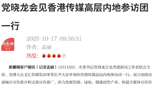 香港傳媒高層內地參訪團在長城國際傳播中心參觀交流 。圖源:長城網 據長城網報道,參訪團一行先後走訪了冀雲·融媒體中心、“學習強國”河北學習平台和長城國際傳播中心,詳細了解了平台運營、國際傳播、技術融合與內容生產等方面的創新實踐。 參觀結束後,雙方舉行座談,就媒體融合趨勢、技術應用與未來合作可能性等議題進行了深入探討。