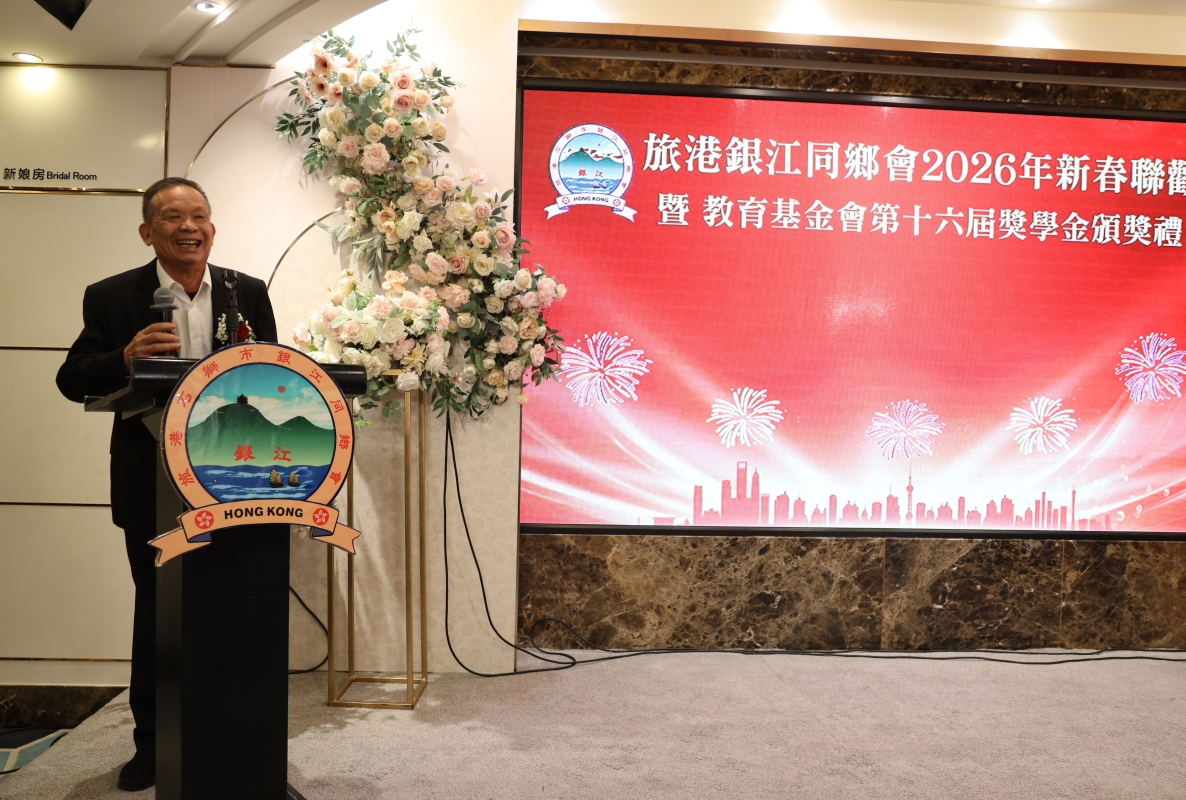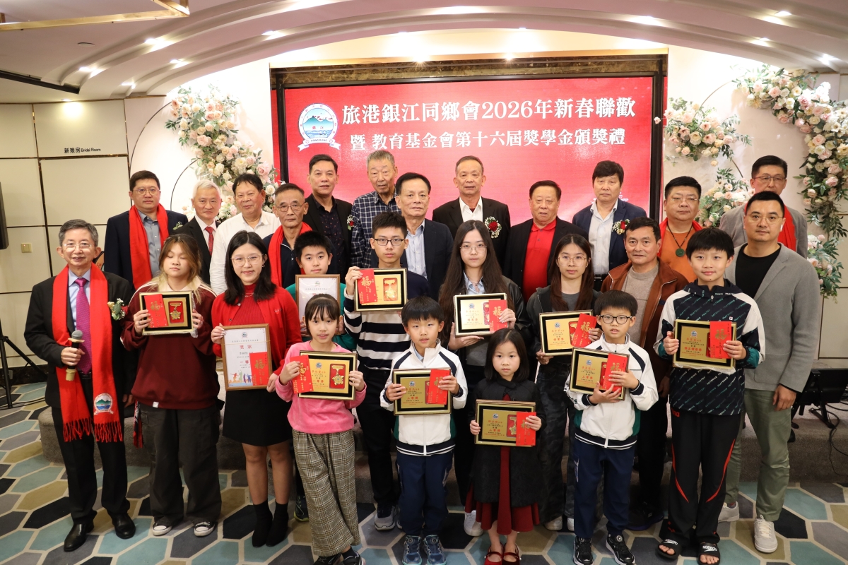 旅港銀江同鄉會2026年新春聯歡暨教育基金會第十六屆獎學金頒獎禮”在北角彩福酒樓舉行。