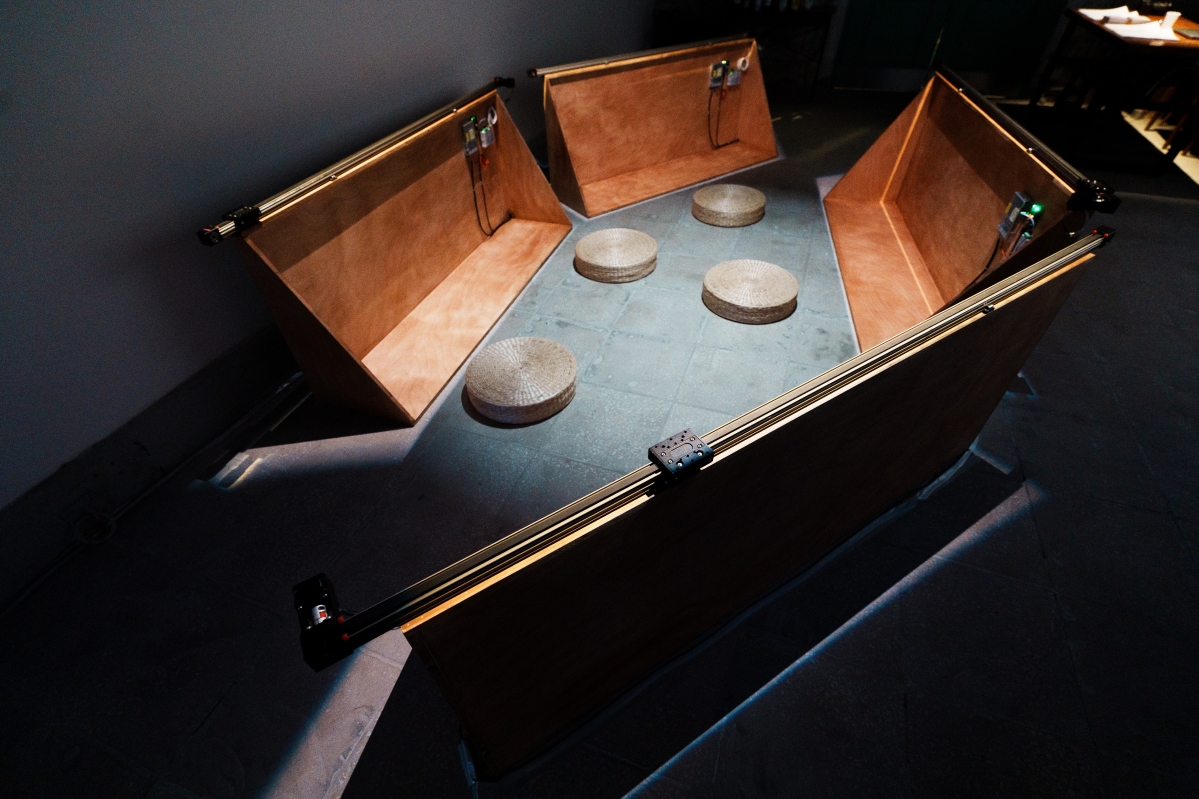 藝術裝置《合唱》,四台滑台同時運作時,所發出的聲音就像合唱團一樣融合。(攝影:Ray Leung) 另一件裝置藝術作品《合唱》則靈感來自於日常生活中的聲音。孫禮賢指出:“我們在日常生活中聽到的聲音大多涉及移動或動作,例如車聲、鳥鳴或人類活動發出的聲音,而唯獨喇叭播放的聲音,聲源是固定的。”基於這一觀察,他創作了讓聲源持續移動的聲音裝置,觀眾需要走動到不同的位置,才能完整地體驗作品。他運用滑台在不同移動速度和頻率下產生相應音高和節奏的特點,編程控制四台滑台同時運作,使它們像合唱團一樣融和起來。 孫禮賢對藝發局的資助表示感激:“這次的資助非常慷慨,而且給了一年的時間,讓我有充足的時間和空間去思索自己關心的話題和想做的項目,也讓我可以多角度呈現自己想做的事情。”他特別提到,導師的配對機制對他的創作過程幫助極大:“這次算是我們第一次做展覽,如果光靠自己的話確實有難度。有了導師的指導和資源支持,我們才能實現這樣一個真正屬於自己的個展。” 展覽資訊 由藝發局首屆“藝術科技駐場人才計劃”資助的孫禮賢展覽“動作的述說”,現正於牛棚藝術村的1a空間展出。同場地還舉行了青年藝術家鄭雅茵的展覽“機動起舞”。兩個展覽的展期均至2月16日,為觀眾提供了難得的機會,一窺香港年輕藝術家的創新與多元創作。 透過“藝術科技人才駐場計劃”,香港藝術發展局不僅為年輕藝術家提供了實踐夢想的平台,也為香港的文化藝術生態注入了新的活力。孫禮賢的作品正是這一計劃成功實踐的典範,展現了藝術與科技結合的無限可能性。(完) 【編輯:黃璇】