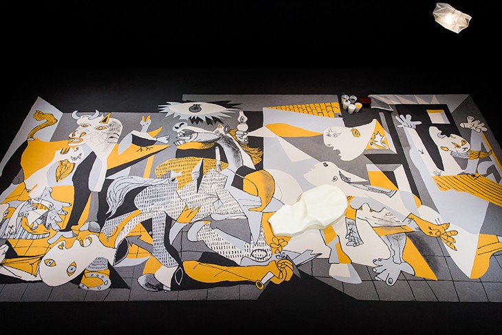 李明維利用沙粒這種象徵無常和不穩定的物料,來重現畢加索名作《格爾尼卡》。