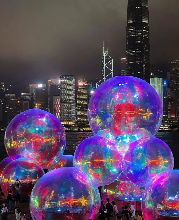 2024年“西九家Fun藝術節”活動現場,展出藝術裝置《抱泡瞬間》。(香港中通社記者 黃璇攝)