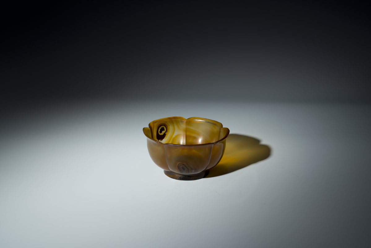 主辦方提供照片 中國彩石雕刻藝術可溯源至遠古時代,漢唐時期開始萌芽,在清代發揚光大。展覽中最古老的玉石雕刻為北宋纏絲瑪瑙花形杯,杯口呈五瓣,全器橙紅色,局部有暗紅色圓紋。它顏色濃艷,石紋多變,與清代的淡素顏色及簡單石紋有明顯分別。同場另一展品綠松石持笙童子可追溯至金朝,有着中亞遊牧民族孩童獨特造型—“木梳背兒”,呈現文化交流的印記。