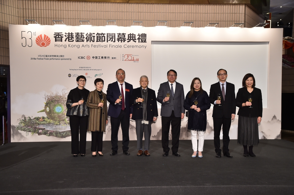香港新聞網3月30日電 第53屆香港藝術節於3月29日圓滿閉幕,由中國國家大劇院管弦樂團擔綱閉幕演出。演出後的閉幕祝酒儀式於香港文化中心舉行,名譽嘉賓為香港特別行政區政府政務司司長陳國基,並聯同香港藝術節主席盧景文、文化體育及旅遊局局長羅淑佩、中國工商銀行(亞洲)董事長兼執行董事劉亞干、中央政府駐港聯絡辦宣傳文體部副部長林枬、香港賽馬會慈善事務部主管(文化、體育及社區參與)葉巧兒、康樂及文化事務署助理署長(演藝)區君儀,以及香港藝術節行政總監余潔儀擔任主禮嘉賓。
