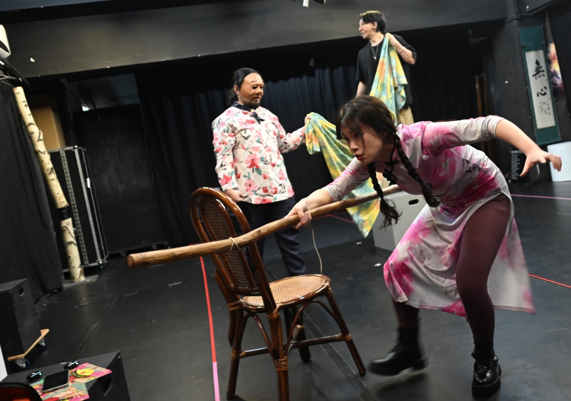“自梳”盤起時代縮影 香港浪人劇場攜作品登陸江西香港新聞網5月7日電 (記者 譚暢)輕輕打開浪人劇場Studio的大門,入目所見是一片黑色的排練用空地。不太大的場地內,道具、樂器等佈局有致,各式參考書籍在書架上碼放整齊。這間隱於一棟工業大廈內的劇團,將一種獨屬於香港的蓬勃生命力展現在中通社記者眼前。 早於2006年成立的浪人劇場,多聚焦於改編香港文學為劇場進行演出。劇團現為香港藝術發展局三年資助藝術機構,將在明年迎來成立第20周年。浪人劇場藝術總監譚孔文接受中通社專訪時表示,今年5月24日至25日,劇團更將赴中國江西參與會昌戲劇季,呈現經典作品《暗示》。