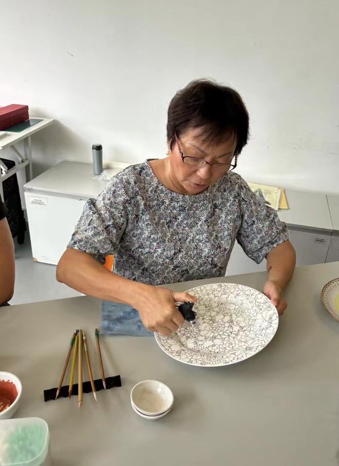 何廖綺玲示範廣彩技巧。(香港中通社記者 黃璇攝) 何廖綺玲表示,廣彩代表着中西文化交融的特色,同時承載中國歷史文化及西方文化,她非常開心能與香港藝術學院合作,與學員一同追尋廣彩的記憶,盡力傳承廣彩技藝。她續稱,希望學員完成課程後,不但能夠傳承廣彩,更能為廣彩帶來新的里程碑,在傳統文化加入新元素,做到“傳”與“創”。
