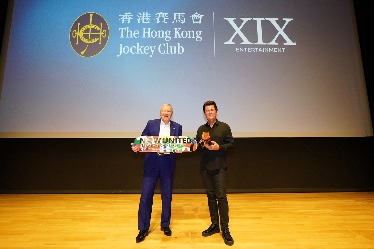 香港賽馬會行政總裁應家柏(左)及XIX Entertainment創辦人Simon Fuller主持啟動儀式。 馬會行政總裁應家柏表示:“我們非常高興能夠宣布這一計劃,這將幫助我們為香港社會做出更大貢獻。”他強調,娛樂、賽馬及馬術運動的結合,體現了人馬合一的精神,與香港的國際聯繫擴展努力相符。