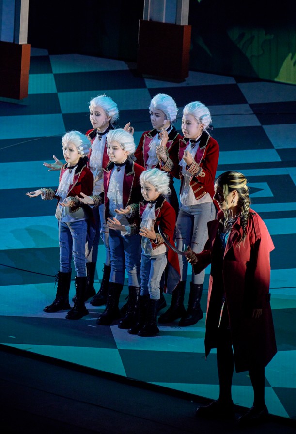 夜后花腔女高音的炫技令觀眾享盡耳福。 在這樣的藝術緯度裡,《魔笛》仍再真實再現了莫扎特多元化的歌劇景象,表演以英語對白德語歌唱,序曲以奏鳴曲的形式開始,精美的弦樂聲華麗且流暢。女主角與捕飛鳥俠巴巴基諾的二重唱《那些感受到愛情的男人》,柔美旋律令人心情舒暢。巴巴基諾這個具有喜劇元素的角色,在第一幕中的《我正是一個捕飛鳥俠》唱出了德國民謠的基調,生動靈活、輕鬆愉快,他的詼諧也叫觀眾很快樂。 終於等到夜后出場,來自韃靼斯坦女高音歌唱家,精準演繹了花腔女高音詠嘆調史上數一數二的名曲,《噢,別發抖,我的愛子》及《地獄的復仇之火在我心中燃燒》,由抒情到花腔唱段,旋律有節制的變化,極為華麗的唱腔,高低起伏、情緒起伏,炫技有度,都令觀眾聽得十分過癮。