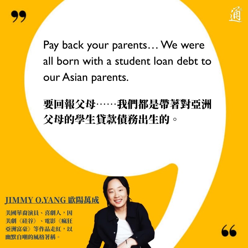 香港新聞網6月12日電 美籍華人喜劇明星歐陽萬成(Jimmy O. Yang)將於明日(6月13日)起至周日(15日)在香港體育館舉辦脫口秀演出,“旋風式訪港”行程備受關注。 歐陽萬成的父母來自上海,後來搬去香港,而他隨後也在香港出生,直到13歲才跟著家人一起移民美國加州。歐陽萬成的長相在美國人眼裡,是“典型東方面孔”,成長過程中,遇過的偏見與歧視不少。然而他並未因此而意志消沉,而是在文化衝突之中找到自己獨特的立足之處,憑著喜劇與演藝才能一飛沖天。 自21歲踏入喜劇圈,到現在37歲,歐陽萬成從一個必須在拍戲之間開Uber(網約車)維持生計的小演員,成功躍升為全球知名的喜劇明星,從《2 Broke Girls》、《Silicon Valley》、《Crazy Rich Asians》串角,到獨挑大梁的脫口秀演出,以及近日《Interior Chinatown》擔綱男主角,讓人不停期待歐陽萬成下一步又會端出什麼精彩作品。以下是香港新聞網整理歐陽萬成的金句和笑點,不妨一覽為他在香港的演出做好準備。