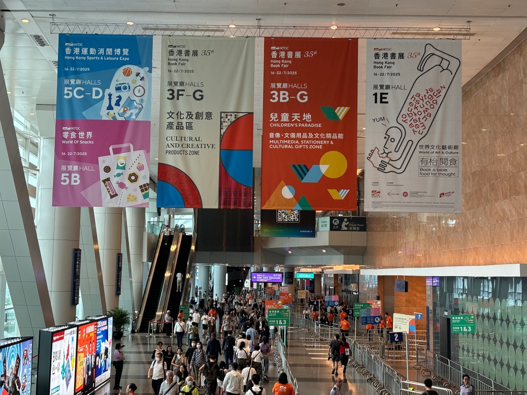 2025年第35屆書展於7月16日在灣仔會展中心揭幕。本屆以“飲食文化·未來生活”為年度主題。(香港中通社記者 黃璇攝)