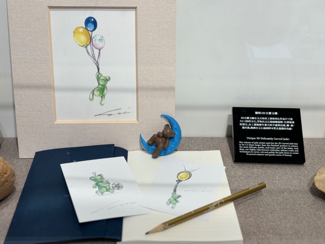 林曉同珠寶藝術空間首度進駐銅鑼灣誠品。(香港中通社記者 黃璇攝) 在近年講究“儀式感”的情感風潮中,設計師林曉同早已是先驅者。他將自身的生命感悟轉化為創作靈感,透過《陪伴玉熊》等經典系列作品,讓每件珠寶皆成為心靈寄託。