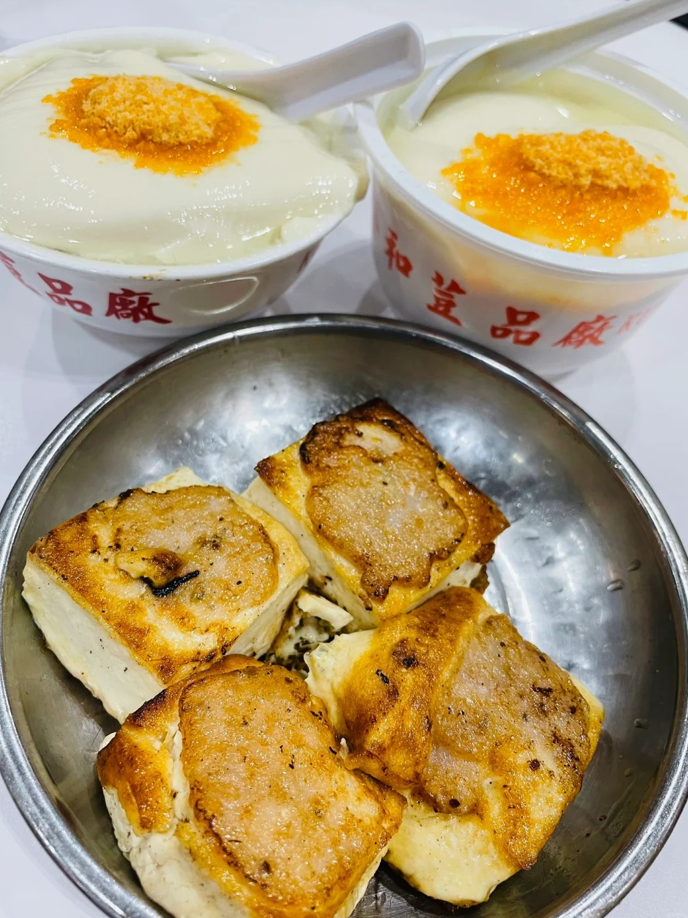深水埗公和荳品廠店內的煎釀豆卜、豆腐花,是很多人下午茶之選。(香港中通社記者 黃璇攝)