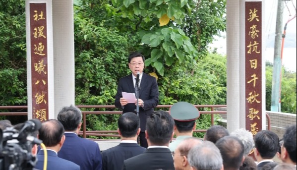 香港中通社9月5日電 香港馬鞍山郊野公園5日舉行抗戰遺址紀念牌匾揭牌儀式,紀念中國人民抗日戰爭暨世界反法西斯戰爭勝利80周年。
