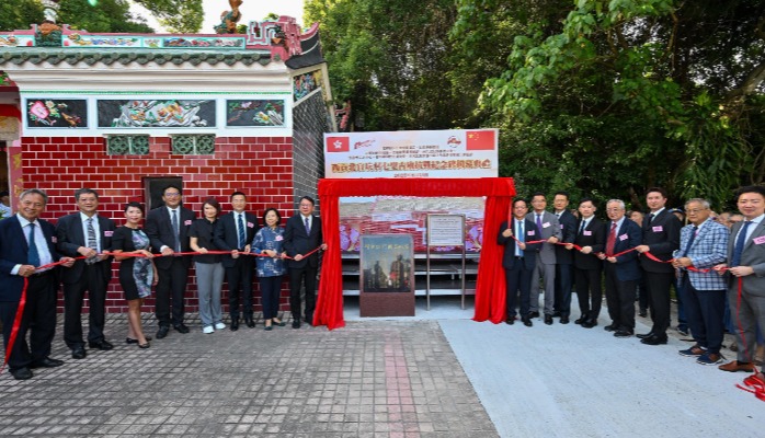 圖為設於馬鞍山郊野公園內的新界西貢企嶺下西沙路的紀念牌匾。(政府新聞處圖片) 豎立紀念牌匾的地點位於公園內的企嶺下西沙路,是抗戰期間“秘密大營救”的重要渡海據點,抗日文化人士輾轉抵達企嶺下海灣,渡海撤離香港。 揭牌儀式由特區政府環境及生態局局長謝展寰、中央人民政府駐香港特別行政區聯絡辦公室新界工作部副部長王卉等主禮。謝展寰表示,揭牌儀式意義非凡,既是紀念抗戰人士無懼犧牲、保家衞國的精神,亦讓更多市民及下一代認識這段重要歷史,從中領略歷史智慧和民族精神。 漁護署早前將位於紅花嶺郊野公園的蓮麻坑鉛礦洞活化成開放式博物館,製作介紹紅花嶺抗日歷史的短片,並設立獅子山戰地遺跡徑及松林砲台歷史徑等,未來將繼續透過宣傳教育,深化市民對郊野公園抗戰遺址的認識,讓更多人認識和關注這段珍貴歷史,從而理解抗戰勝利的重大意義。(完) 【編輯:黃璇】