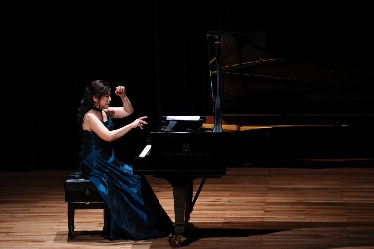 鄭慧(左)與陳蓉暉(右)演奏十分開心,互動流暢。 鄭慧隨即彈出的《日內瓦的鐘聲》及《春江花月夜》,前者是匈牙利浪漫主義作曲家李斯特,為女兒出生做出的祈禱及一個父親歡愉的情緒,在鄭慧的指尖傳遞著,流淌着。她全程沒有看譜,鐘聲的大調和五聲音階模仿古箏音色表達月夜的美。體驗到那些五線譜的音符就像一幅幅山水畫的着筆,把他們傳遞給觀眾,低音、中音、高音,每個音區的轉換微妙微翹,準確無誤,這是音樂的美感,這是觀眾的美的體驗,無與倫比。