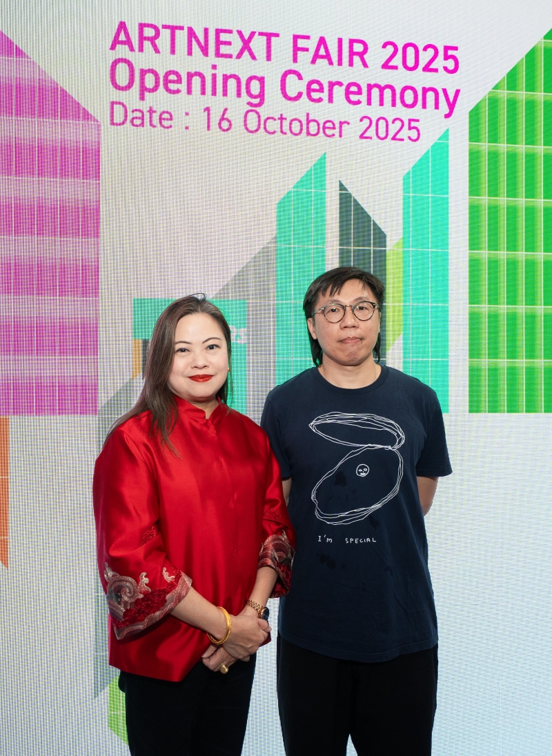 文化體育及旅遊局局長羅淑佩 (左)與 ArtNext 國際藝術家金獎得主亞米青合照。圖源:主辦方 大會於開幕典禮上,由重量級嘉賓揭曉並頒發多個重要獎項。ArtNext Fair 堅守扶植藝術家的使命,各獎項得獎者名單如下: