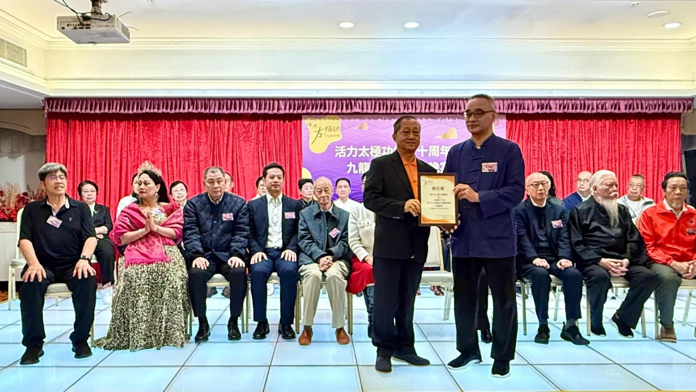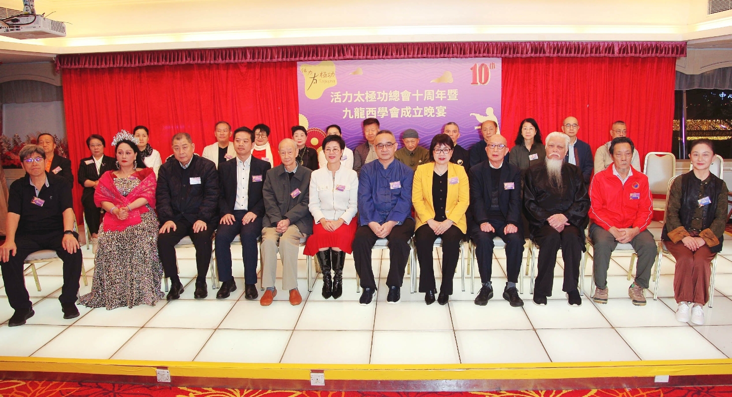香港活力太極功總會十周年慶典圓滿舉行香港新聞網12月15日電 香港活力太極功總會於12月13日舉行“十周年慶典暨九龍西學會成立典禮”。活動匯聚近二百名會員、教練及各界嘉賓,場面熱鬧,共同見證總會服務社區十載的重要里程碑。 典禮邀得多位社會賢達及武術界代表出席,包括:活力太極功總會主席嚴義松、香港福建社團聯會常務副主席翁雅玲女士、國際自然門聯合總會主席陳世萍、蓬瀛仙館副理事長葉滿棠MH、公共小型巴士總商會主席淩志強院士MH、東區區議員洪志傑、香港中西區婦女會主席趙華娟MH、紐西蘭精武體育總會永遠會長廖國存、香港太極總會會長李法平、八卦掌名家張光萍老師、仙福茗茶負責人翁雨棠女士、香港美術研究會會長王子天、香港閩清同鄉聯誼會會長黃挺光、香港培新太極學會會長吳少珍女士,以及新成立的活力太極功九龍西學會會長李秀文等嘉賓。