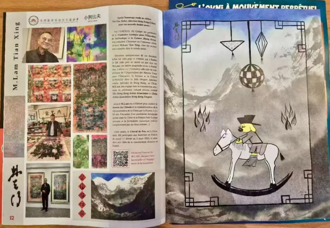 香港新聞網1月7日電 當代著名水墨畫家林天行 (Lam Tian Xing)“香港系列”作品成為最新一期法國經典漫畫雜誌《PIF Gadget》的“雙封面”之一。據介紹,本次合作歷時數月,藝術家與《PIF》團隊最終封面選用了畫作《香江煥彩》,并融合了林天行的五款“福”字書法寓意五福臨門,并與雜誌經典角色“小狗比夫”的幽默造型巧妙結合,創造出一場東西方美學的精彩對話。這次合作,也是國際藝術界對香港視覺藝術的獨特魅力與活力的認可。